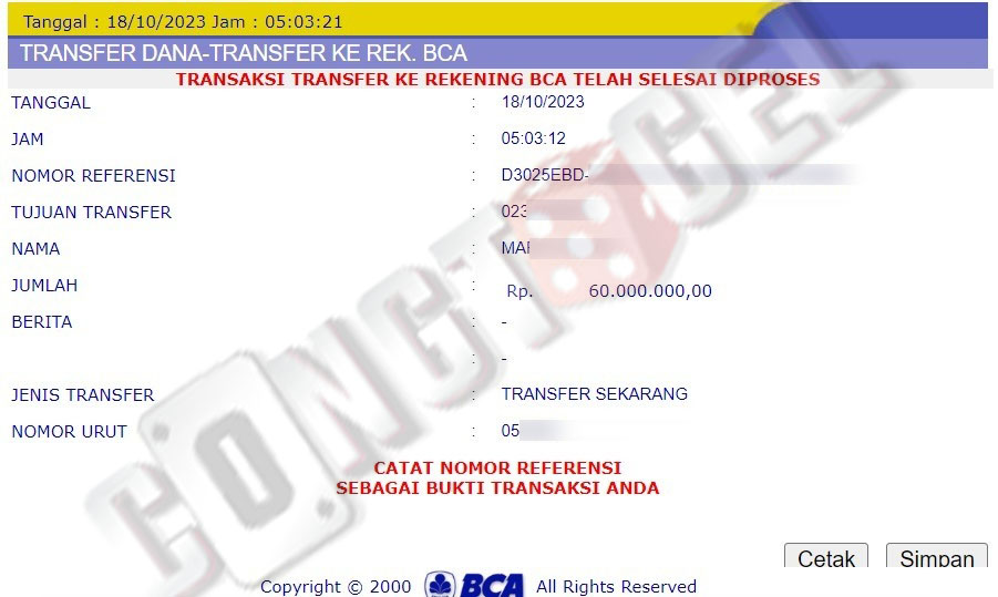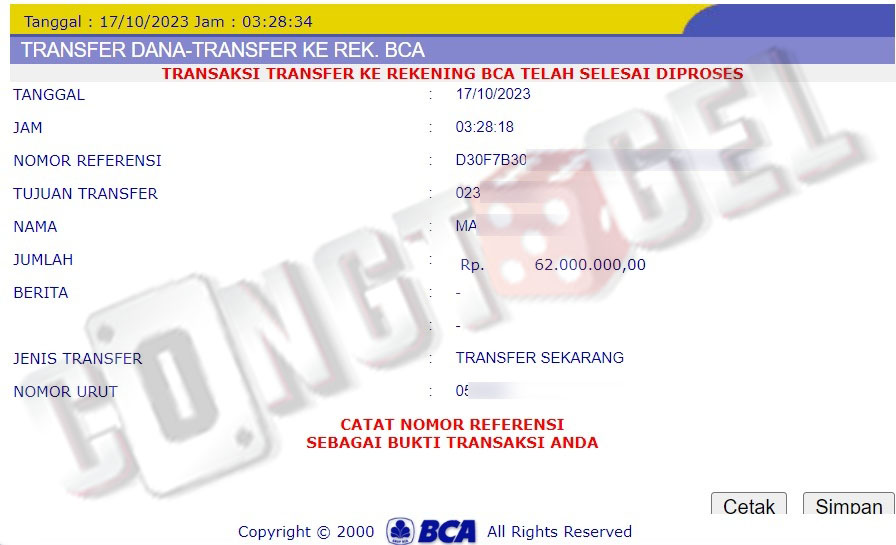 Dibawah ini merupakan bukti transfer pembayaran JP kemenangan member CONGTOGEL. Ini membuktikan jika kami adalah bandar togel yang sangat kredible dan dapat dipercaya.