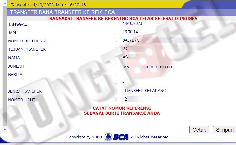 Dibawah ini merupakan bukti transfer pembayaran JP kemenangan member CONGTOGEL. Ini membuktikan jika kami adalah bandar togel yang sangat kredible dan dapat dipercaya.