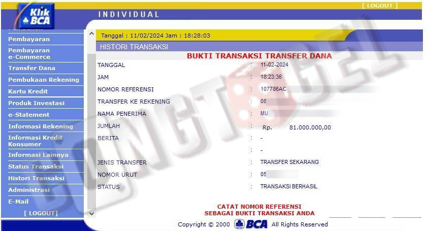 Dibawah ini merupakan bukti transfer pembayaran JP kemenangan member CONGTOGEL. Ini membuktikan jika kami adalah bandar togel yang sangat kredible dan dapat dipercaya.