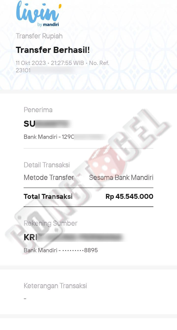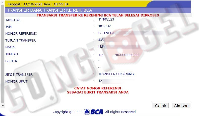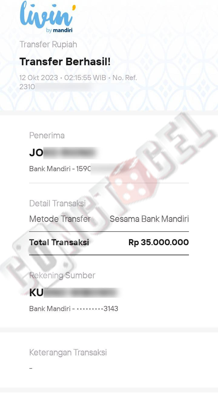 Dibawah ini merupakan bukti transfer pembayaran JP kemenangan member CONGTOGEL. Ini membuktikan jika kami adalah bandar togel yang sangat kredible dan dapat dipercaya.