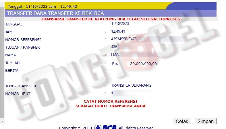 Dibawah ini merupakan bukti transfer pembayaran JP kemenangan member CONGTOGEL. Ini membuktikan jika kami adalah bandar togel yang sangat kredible dan dapat dipercaya.