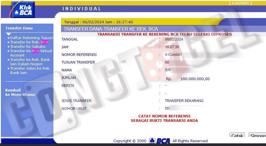 Dibawah ini merupakan bukti transfer pembayaran JP kemenangan member CONGTOGEL. Ini membuktikan jika kami adalah bandar togel yang sangat kredible dan dapat dipercaya.