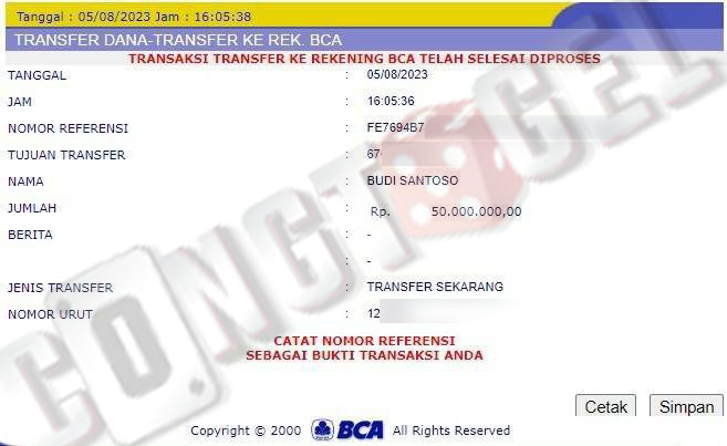 Dibawah ini merupakan bukti transfer pembayaran JP kemenangan member CONGTOGEL. Ini membuktikan jika kami adalah bandar togel yang sangat kredible dan dapat dipercaya.