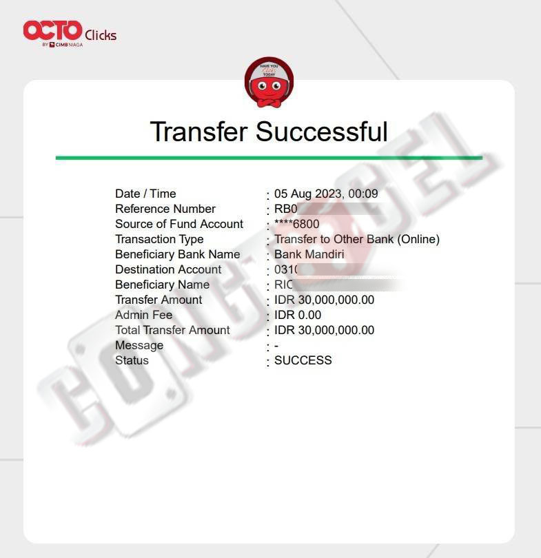 Dibawah ini merupakan bukti transfer pembayaran JP kemenangan member CONGTOGEL. Ini membuktikan jika kami adalah bandar togel yang sangat kredible dan dapat dipercaya.
