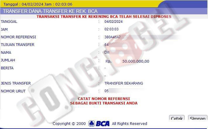 Dibawah ini merupakan bukti transfer pembayaran JP kemenangan member CONGTOGEL. Ini membuktikan jika kami adalah bandar togel yang sangat kredible dan dapat dipercaya.