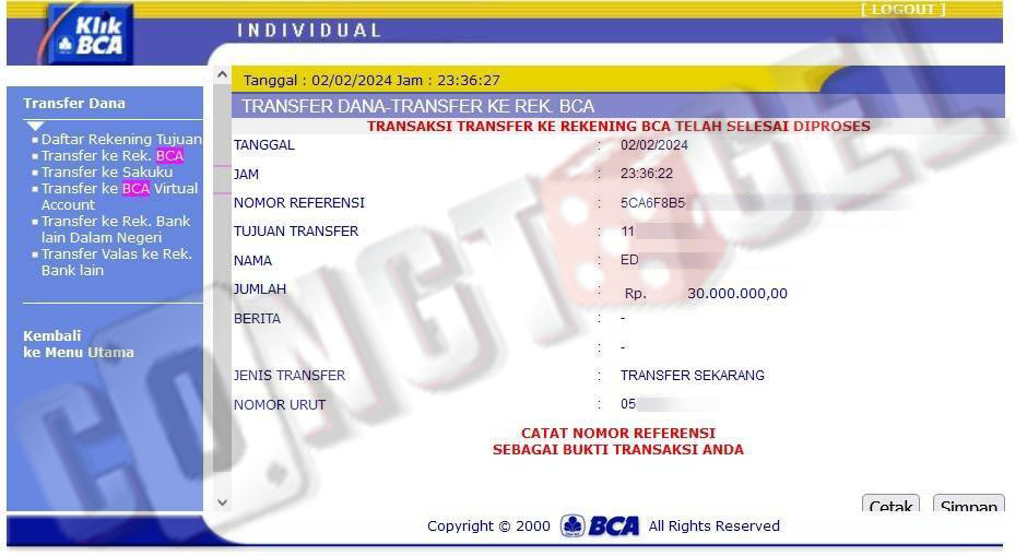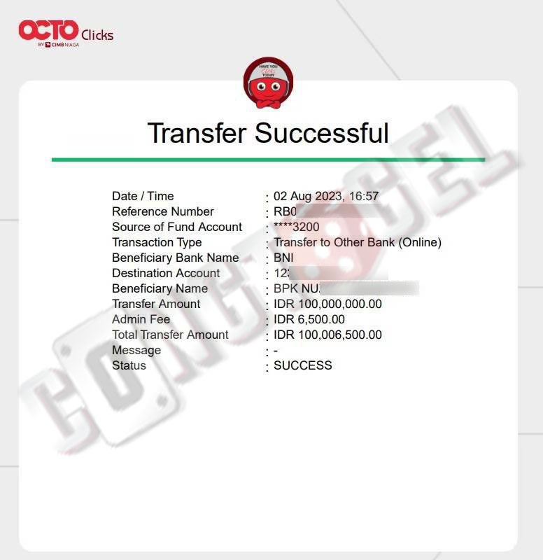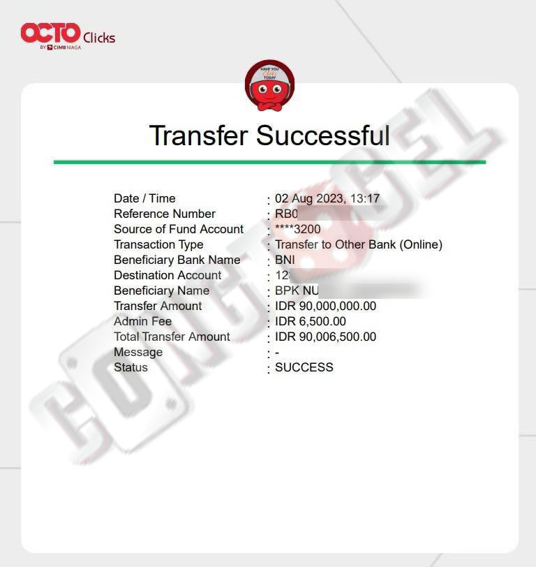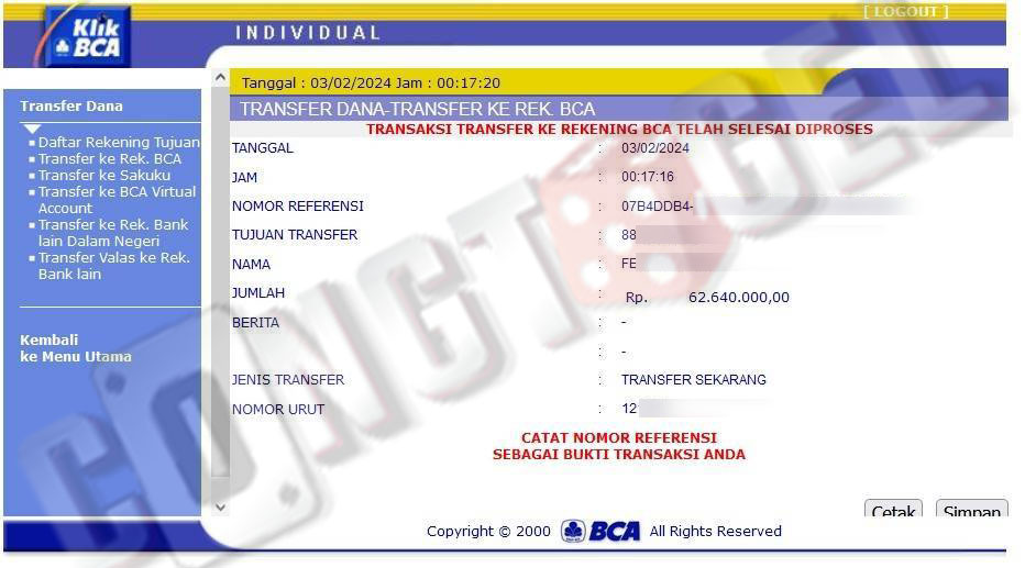 Dibawah ini merupakan bukti transfer pembayaran JP kemenangan member CONGTOGEL. Ini membuktikan jika kami adalah bandar togel yang sangat kredible dan dapat dipercaya.