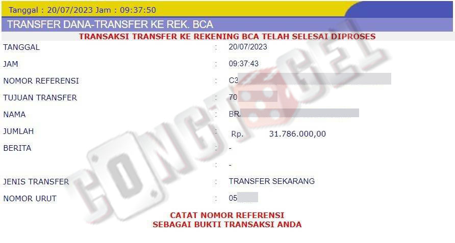Dibawah ini merupakan bukti transfer pembayaran JP kemenangan member CONGTOGEL. Ini membuktikan jika kami adalah bandar togel yang sangat kredible dan dapat dipercaya.