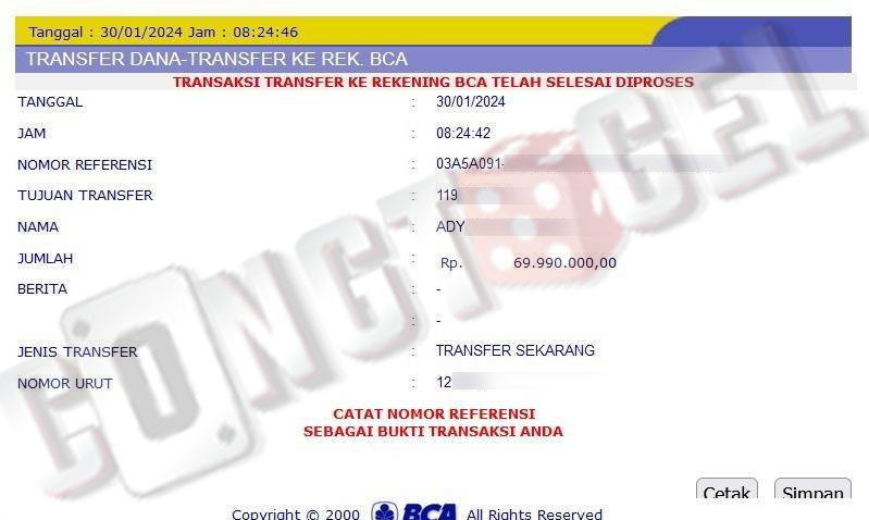 Dibawah ini merupakan bukti transfer pembayaran JP kemenangan member CONGTOGEL. Ini membuktikan jika kami adalah bandar togel yang sangat kredible dan dapat dipercaya.