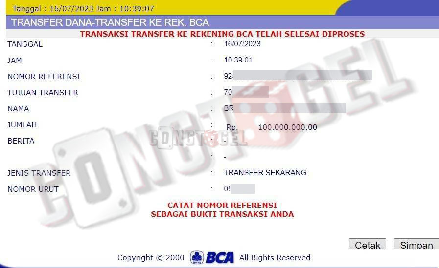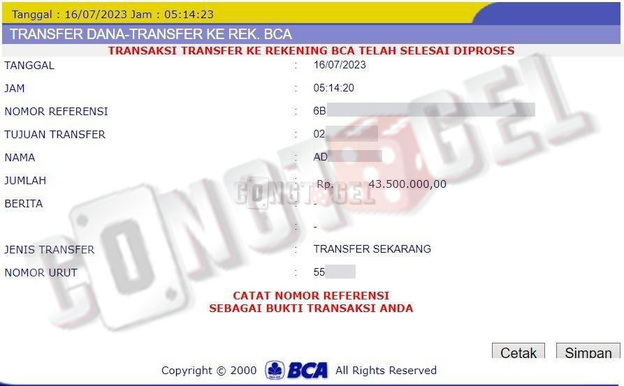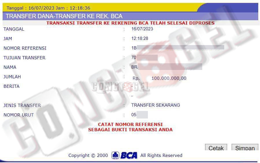 Dibawah ini merupakan bukti transfer pembayaran JP kemenangan member CONGTOGEL. Ini membuktikan jika kami adalah bandar togel yang sangat kredible dan dapat dipercaya.