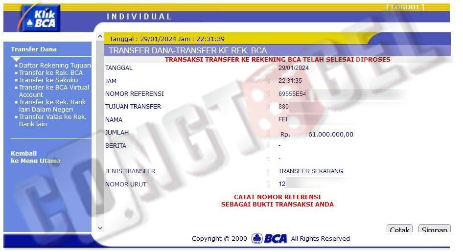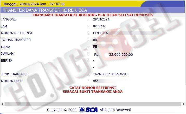 Dibawah ini merupakan bukti transfer pembayaran JP kemenangan member CONGTOGEL. Ini membuktikan jika kami adalah bandar togel yang sangat kredible dan dapat dipercaya.