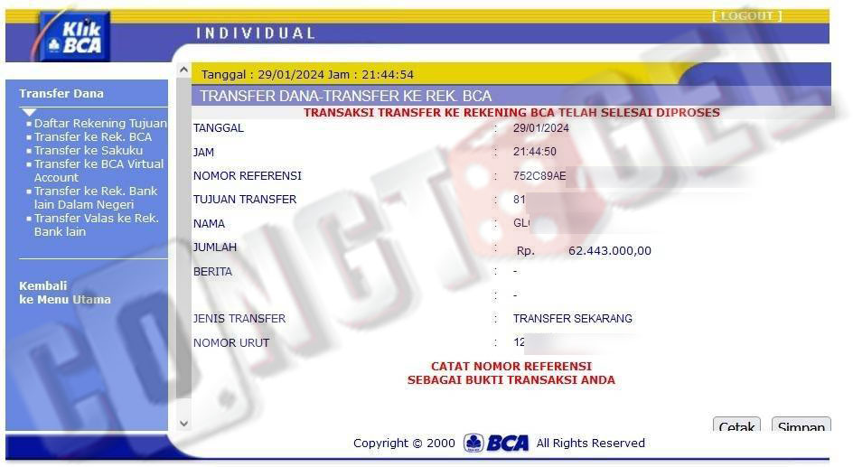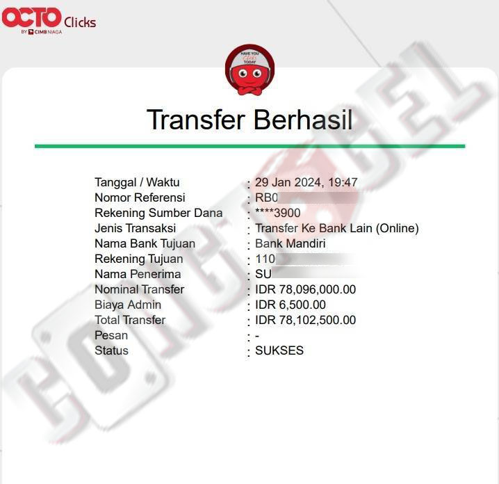Dibawah ini merupakan bukti transfer pembayaran JP kemenangan member CONGTOGEL. Ini membuktikan jika kami adalah bandar togel yang sangat kredible dan dapat dipercaya.